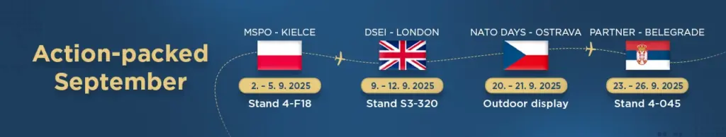 In the second half of September, we move to home ground, starting in the Czech Republic, where ZVI is based. At the Ostrava airport, NATO DAYS take place – a showcase of the very best that Czech defence companies have to offer their partners. For MSM GROUP, it is an excellent platform to present our production also in the context of regional and alliance cooperation.